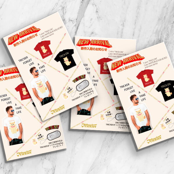 架空のファッションブランド「Tricker」の新商品告知DMデザイン②です。